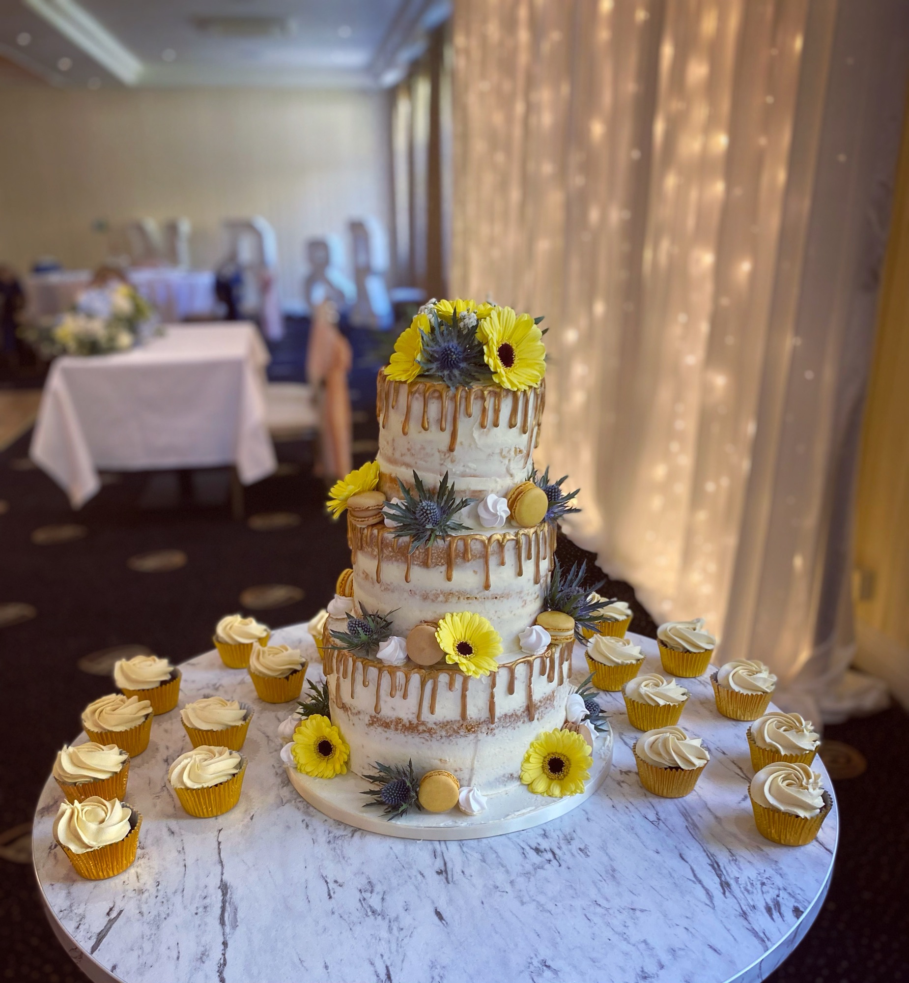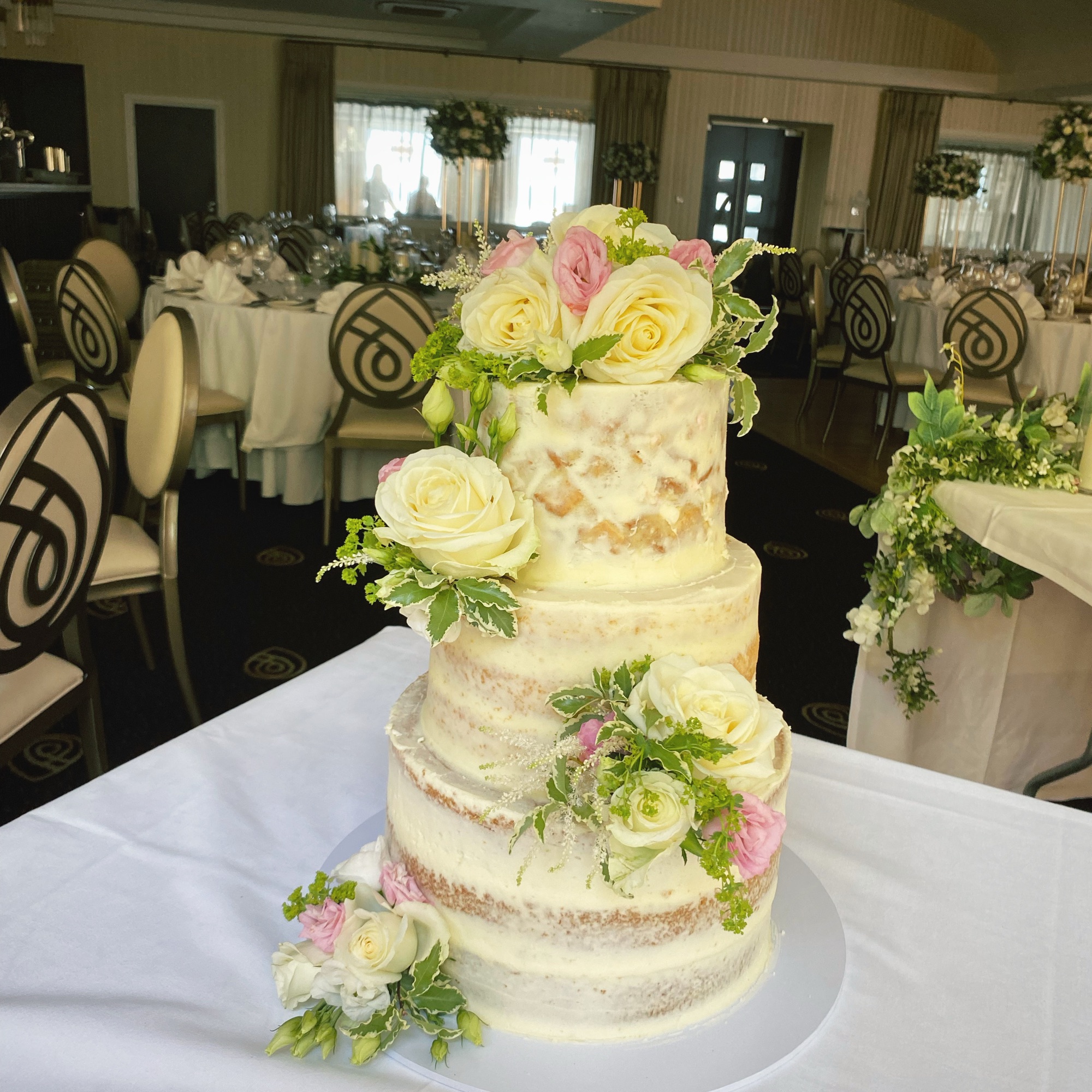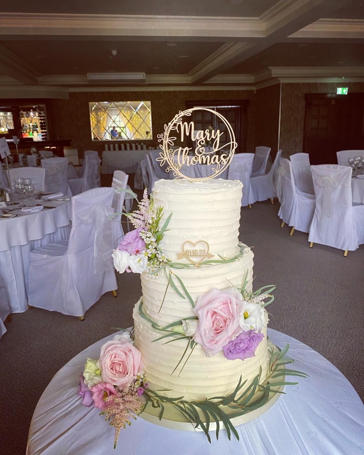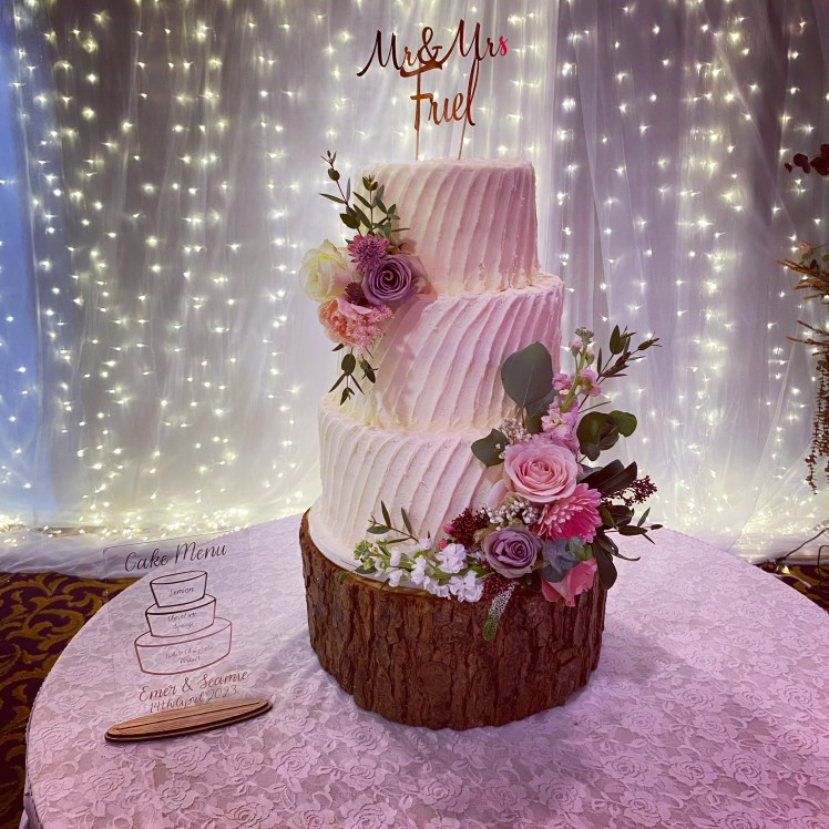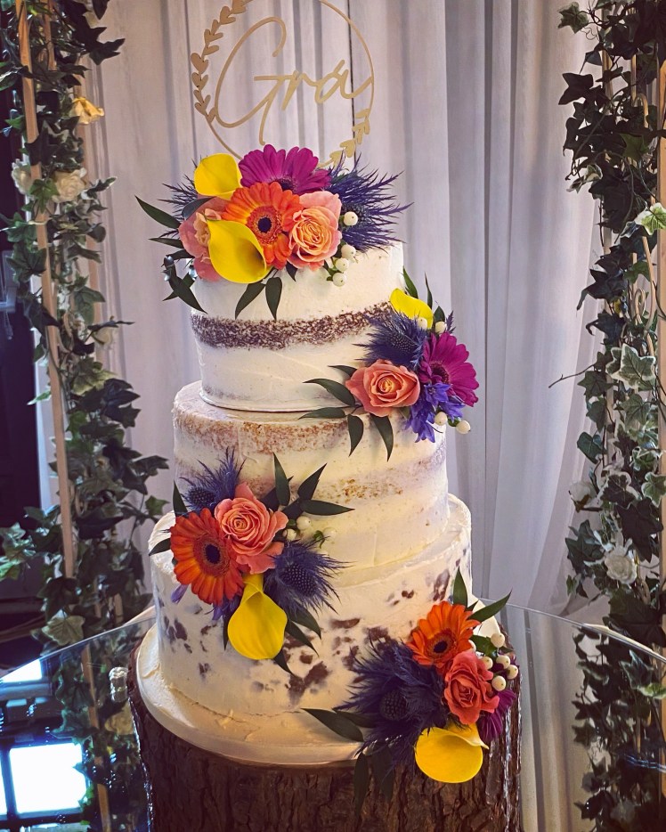 Naked, semi-naked and buttercream wedding cakes have become increasingly popular over the last number of years and are a great option for any style of wedding. They can be decorated with fresh fruit, fresh flowers, sugar flowers or artificial flowers to compliment your theme.